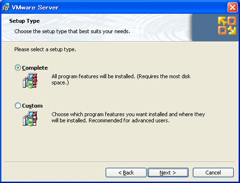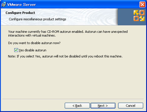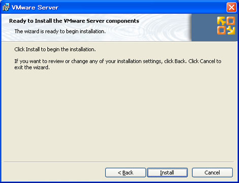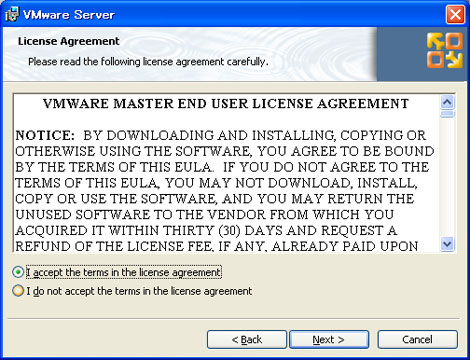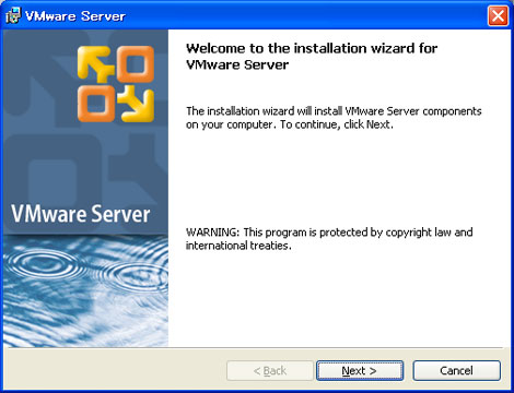 vmware server のセットアップはとても簡単です。インストールファイルを起動し、指示に従えば10分程度で完了します。インストールファイル、シリアルキーを取得していない方は「